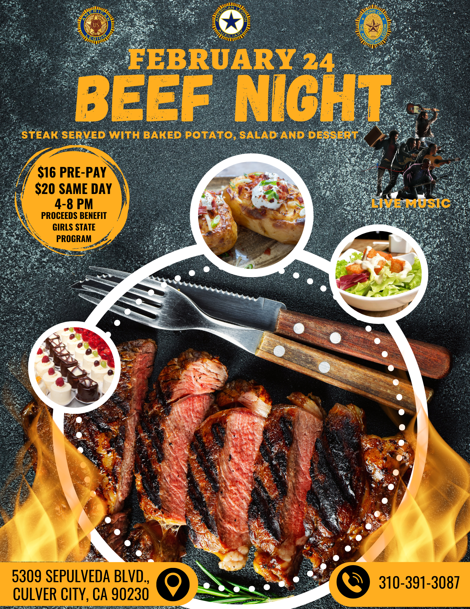 Join us for steak night fundraiser. All proceeds benefit Girls State program.
